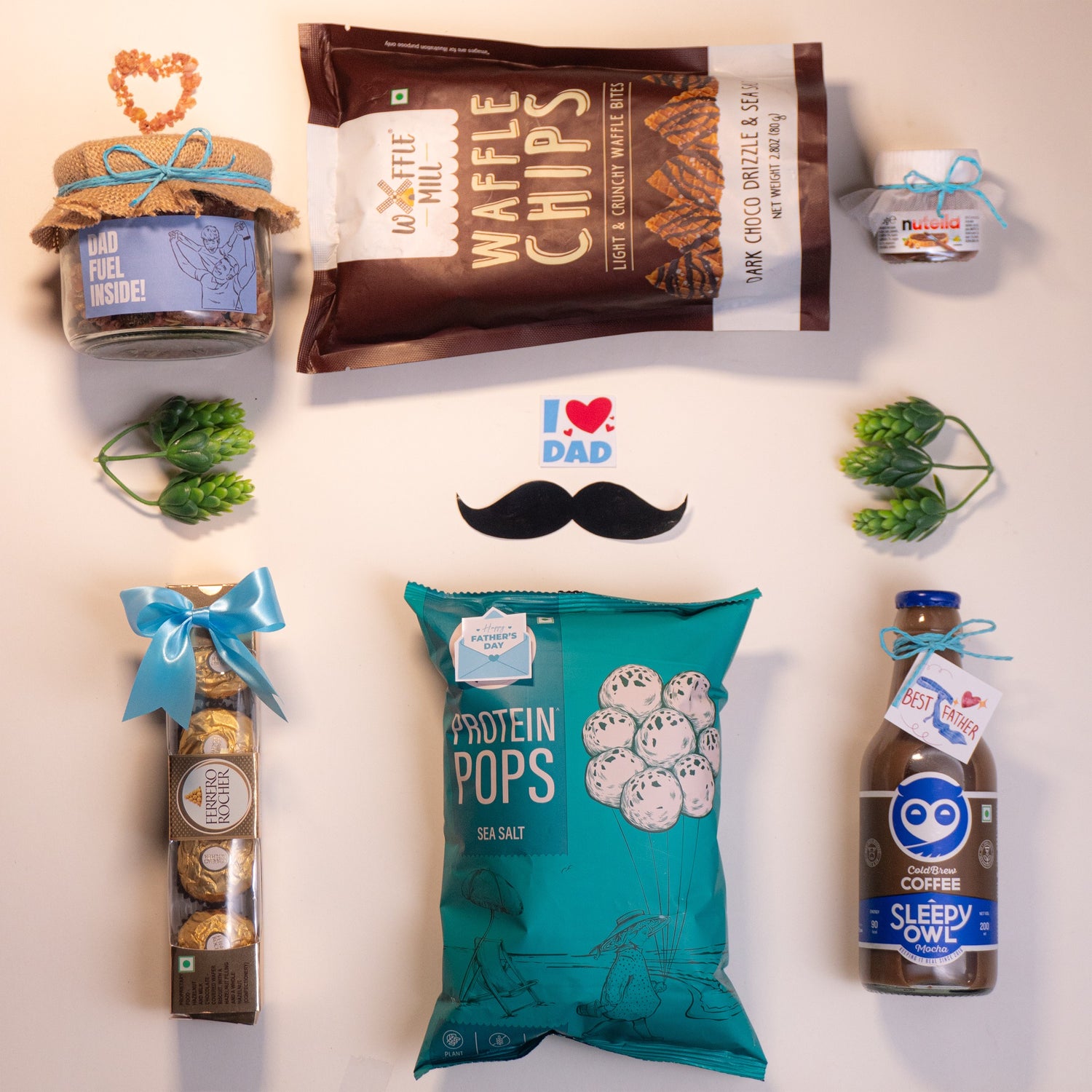 Celebrate Father’s Day 2025 with a gourmet basket that’s as cool as dad! Packed with Makhana, Waffle Chips, Cold Coffee, Ferrero Rocher & more — this Father's Day gift hamper is the perfect way to say “Thanks for everything, Dad!”. Order this gift for dad and make him snack-happy.